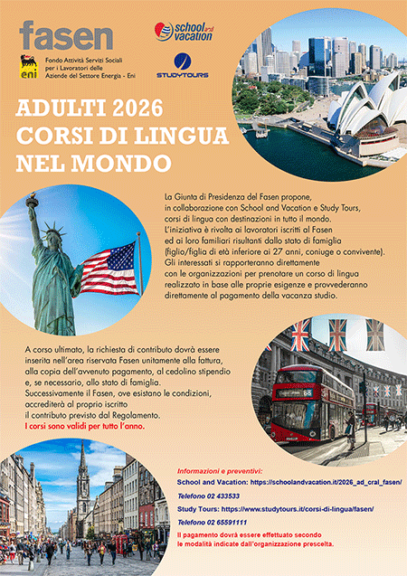 La Giunta di Presidenza del Fasen propone, in collaborazione con School and Vacation e StudyTours, corsi di lingua con destinazioni in tutto il mondo